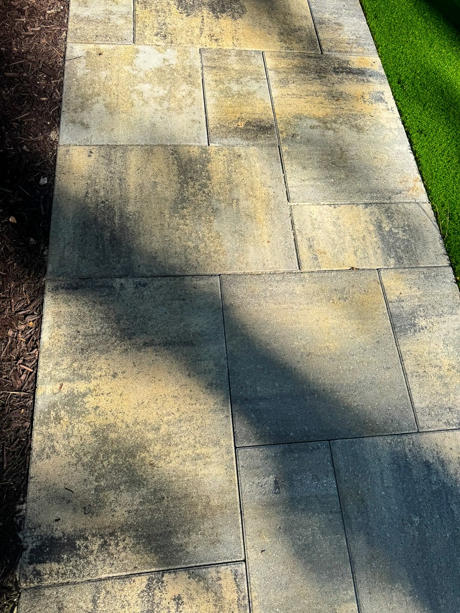 - A large Belgard patio and step system connecting each tier seamlessly.