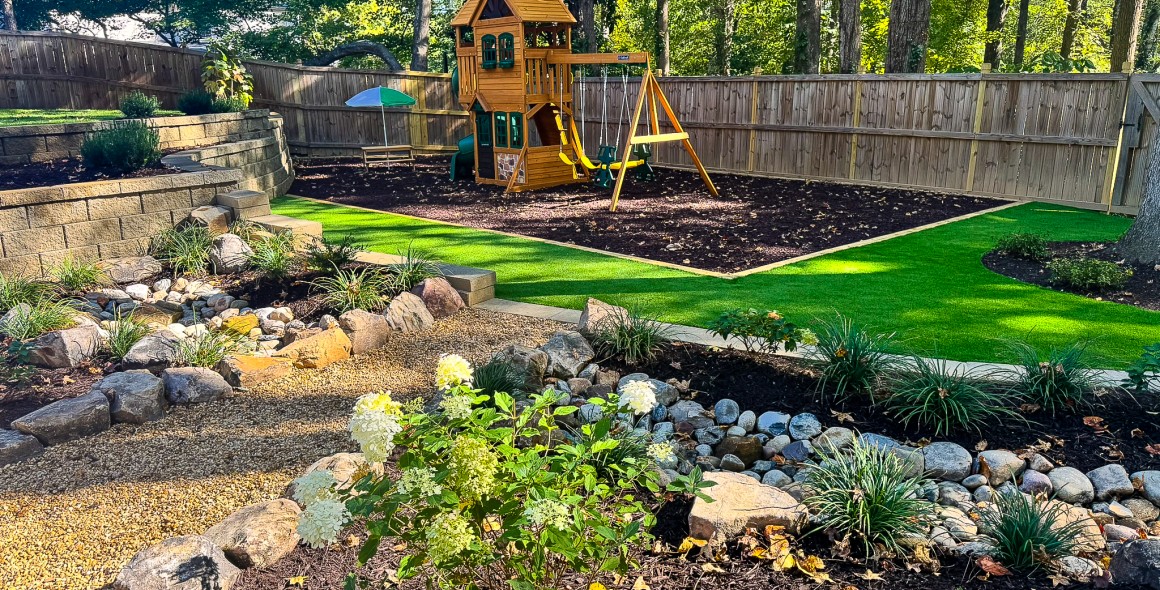 What started as a yard filled with grading and drainage problems became a peaceful, multi-level retreat designed for both play and relaxation. For this family, their spacious backyard in Sandy Springs had always felt like a missed opportunity, full of potential but unusable for their two-year-old and two dogs.